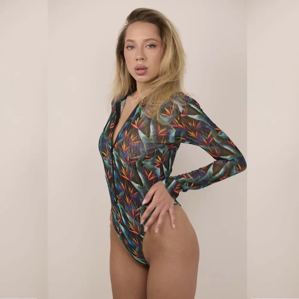 Dėl specialios struktūros su oro tarpais audinys džiūsta net iki 7 kartus greičiau nei įprasti maudymosi kostiumėliai. Be to, jis dailiai priglunda ir išryškina figūrą – tinka visiems kūno tipams.